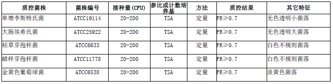 按標簽用法制備培養基,接種以下質控菌株,放置36±1℃需氧培養48±2小時。